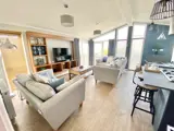 This is the absolutely beautiful Bay Lodge. It boasts stunning sea views, a sunken hot tub and gorgeous interior. With its modern fittings and stylish décor, it makes for the perfect get away!