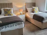 Brand new 2022 luxury lodge. Spacious, light and modern with a king-size bed in the Master suite with dressing area and overhead rain shower in en-suite bathroom. The second bedroom has a twin bed (double by arrangement), and a full second bathroom with overhead shower. Open plan lounge/kitchen & dining with patio doors leading to decking/terrace and outdoor hot tub with gorgeous views of the sea and Fishguard port.