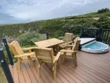 Grugog has an absolutely stunning positioning on the resort, overlooking the sea and cliffs, with an idyllic view from its hot tub. This cosy, bright and modern furnished lodge, makes for superb holiday, with all you need to relax in comfort and style!
