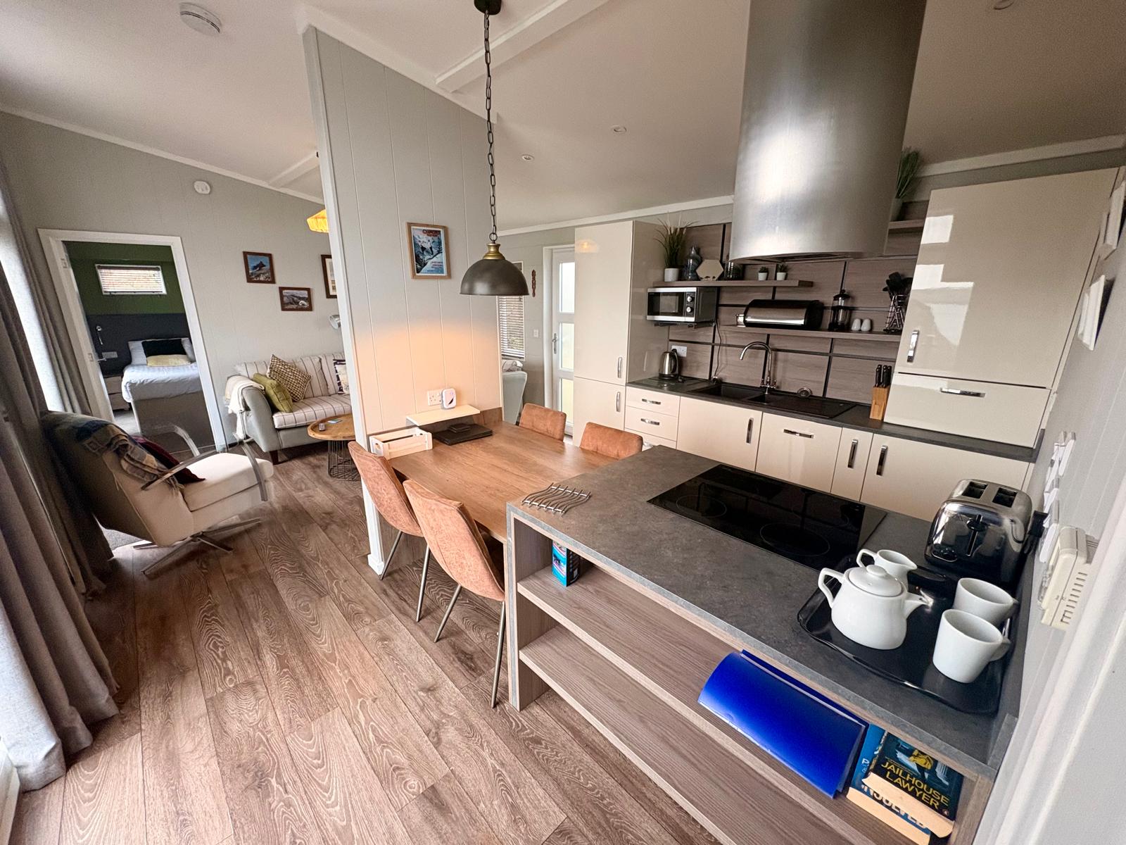 This outstanding superior lodge, situated in a prime location on the resort is effortlessly beautiful. With two bedrooms with en suites, cosy living and kitchen area along with a spectacular hot tub and decking area for you to take in the breath-taking view, you are guaranteed to have a luxurious and relaxing stay.